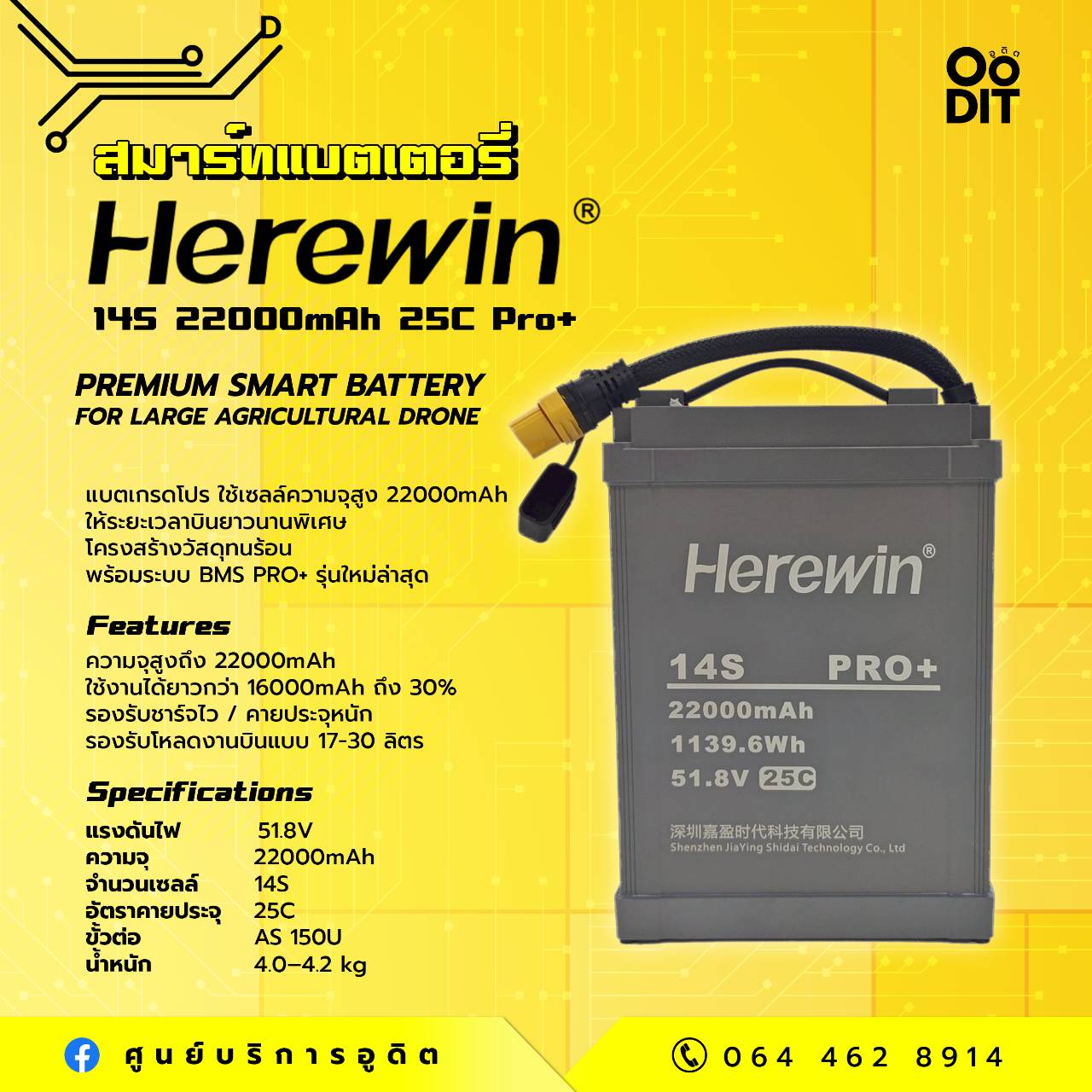 สมาร์ทแบตเตอรี่ Herewin สำหรับโดรนเกษตร 14S 22000mAh 25C Pro+